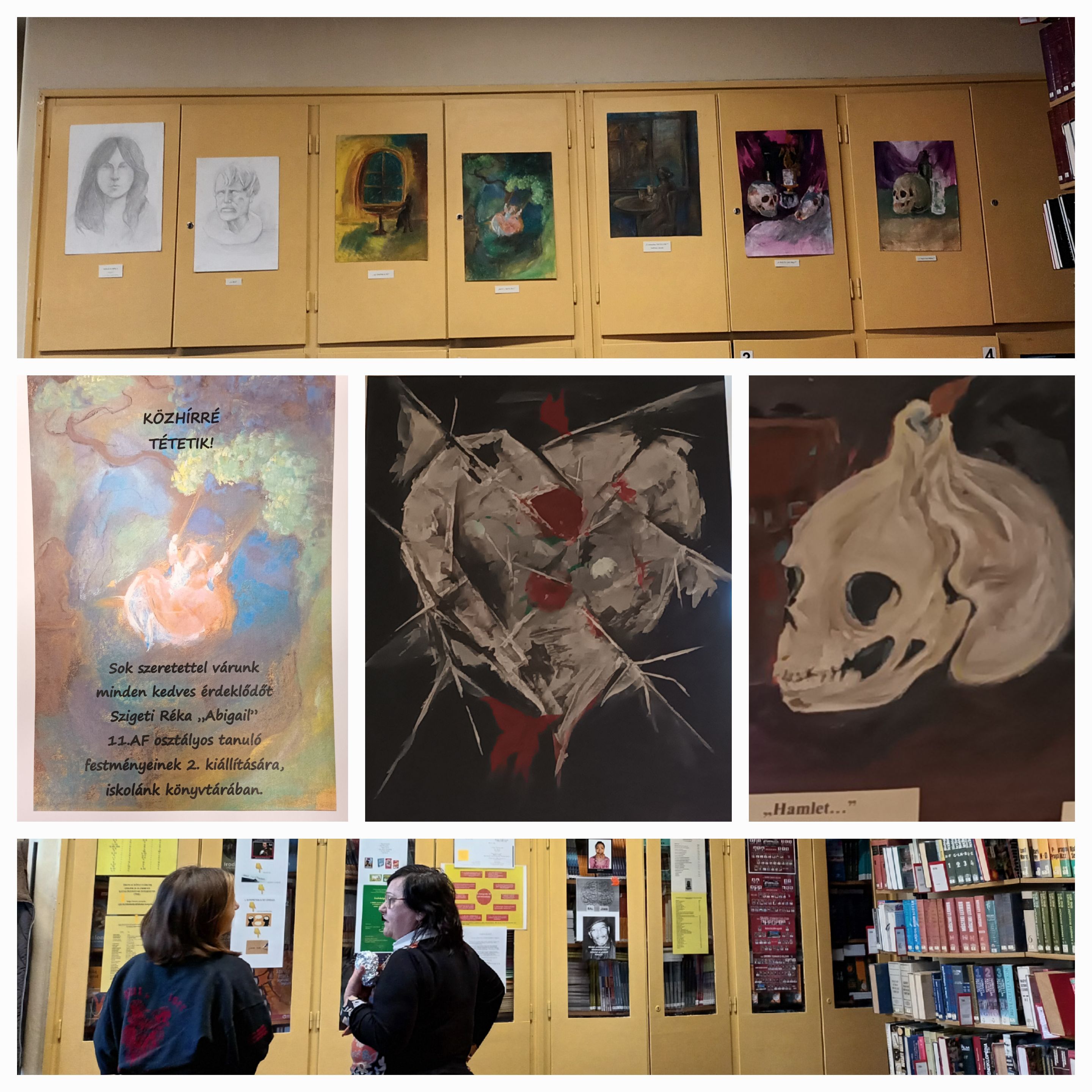 Immáron második alkalommal rendezzük meg iskolánk könyvtárában Szigeti Réka "Abigail" 11.AF osztályos tanuló festményeinek, rajzainak kiállítását.