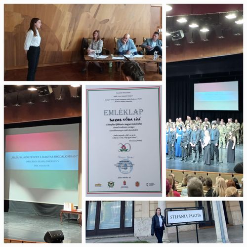 A Honvédelmi Minisztérium, a Külső-Pesti Tankerület Központ és a Budapest XVIII. Kerületi Vörösmarty Mihály Ének-zenei, Nyelvi Általános Iskola és Gimnázium által szervezett "Hazafias költészet a magyar irodalomban" címmel megrendezett országos szavalóversenyen, 2026. március 10-én, Budapesten- BAKOS NÓRA LILI 11.D osztályos tanulónk képviselte iskolánkat.